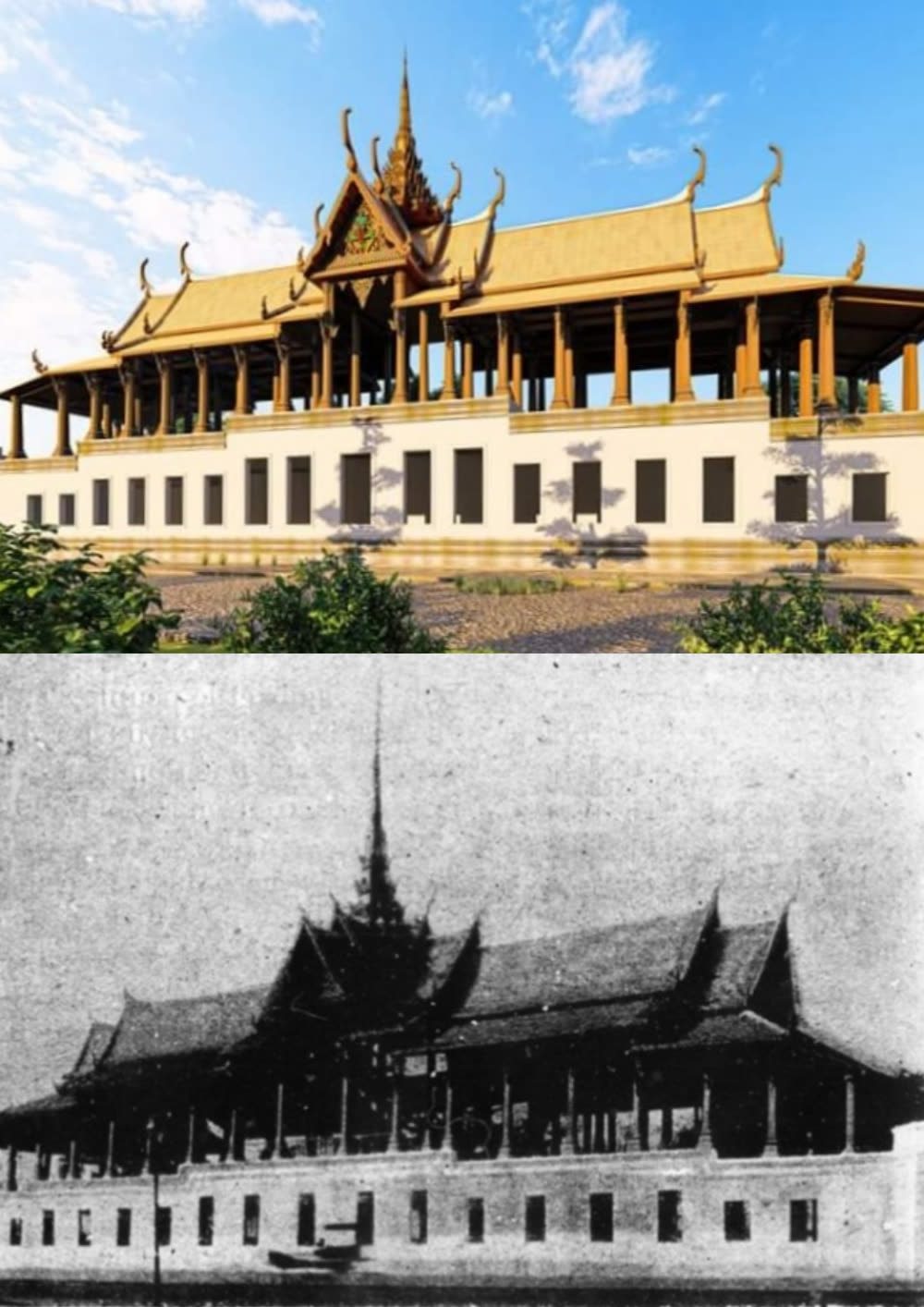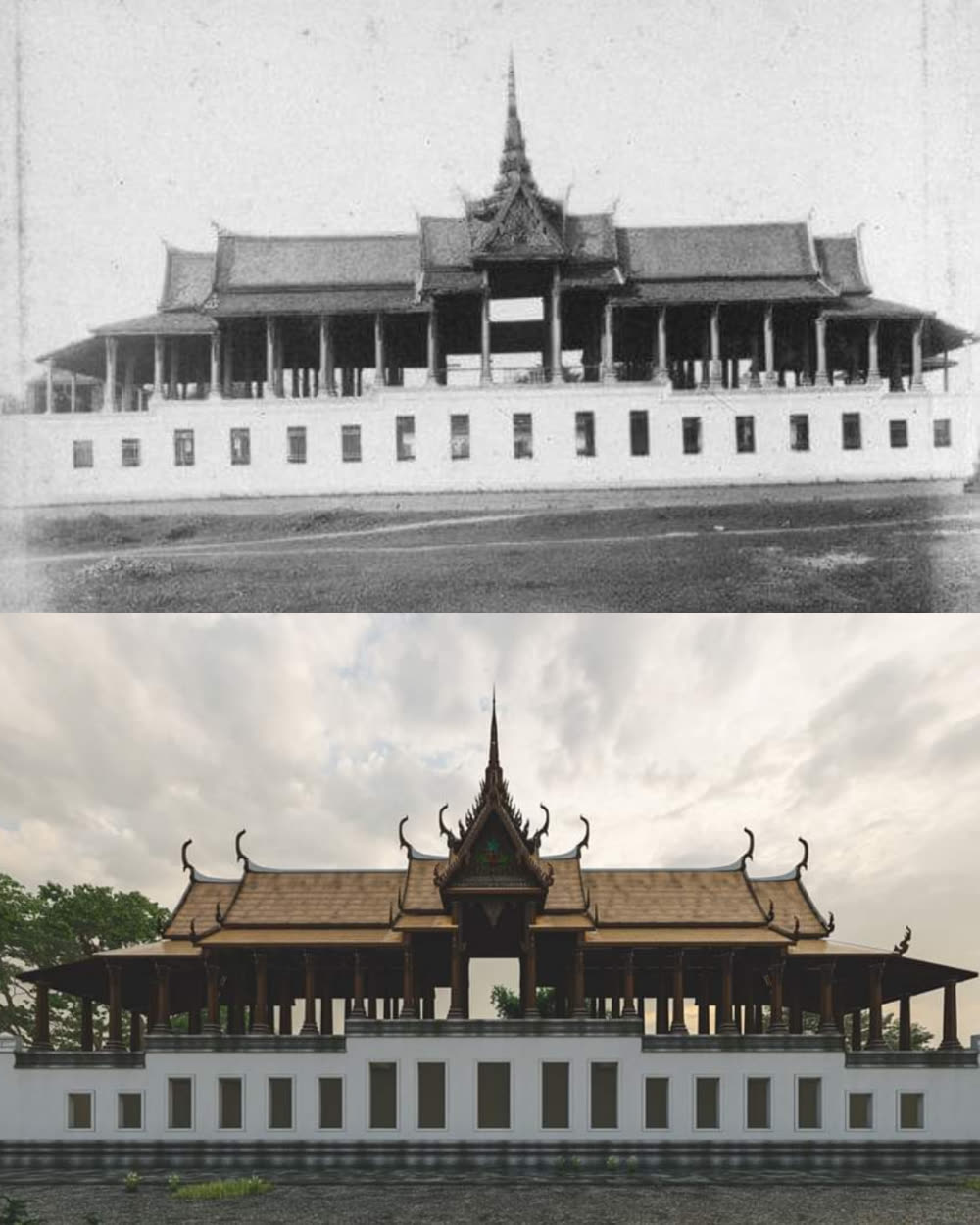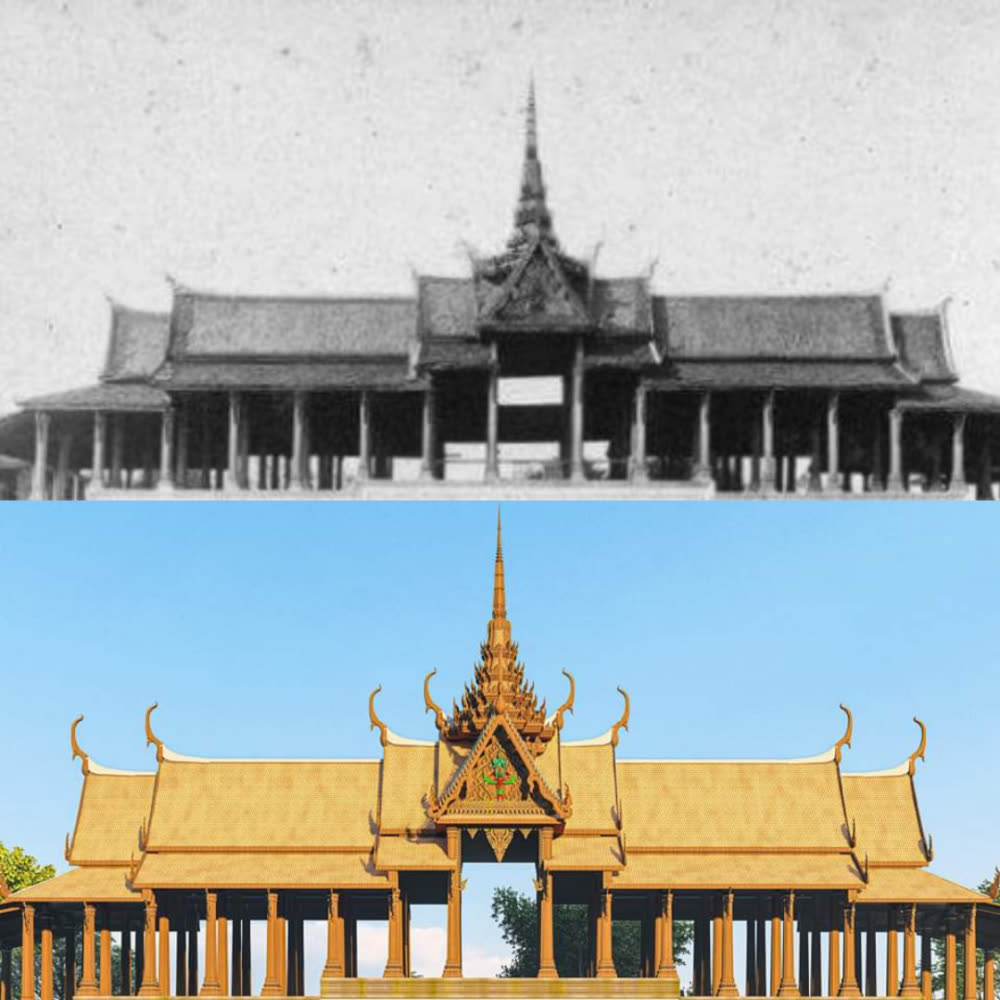 ៦សន្លឹក បង្ហាញពីទិដ្ឋភាពប្រាសាទច័ន្ទឆាយាយុគដំបូងក្នុងរជ្ជកាលព្រះបាទនរោត្តម គូរឡើងវិញដោយនិស្សិតខ្មែរម្នាក់