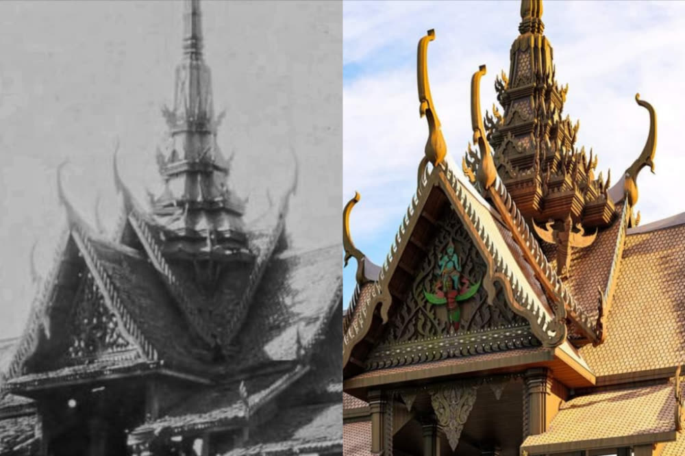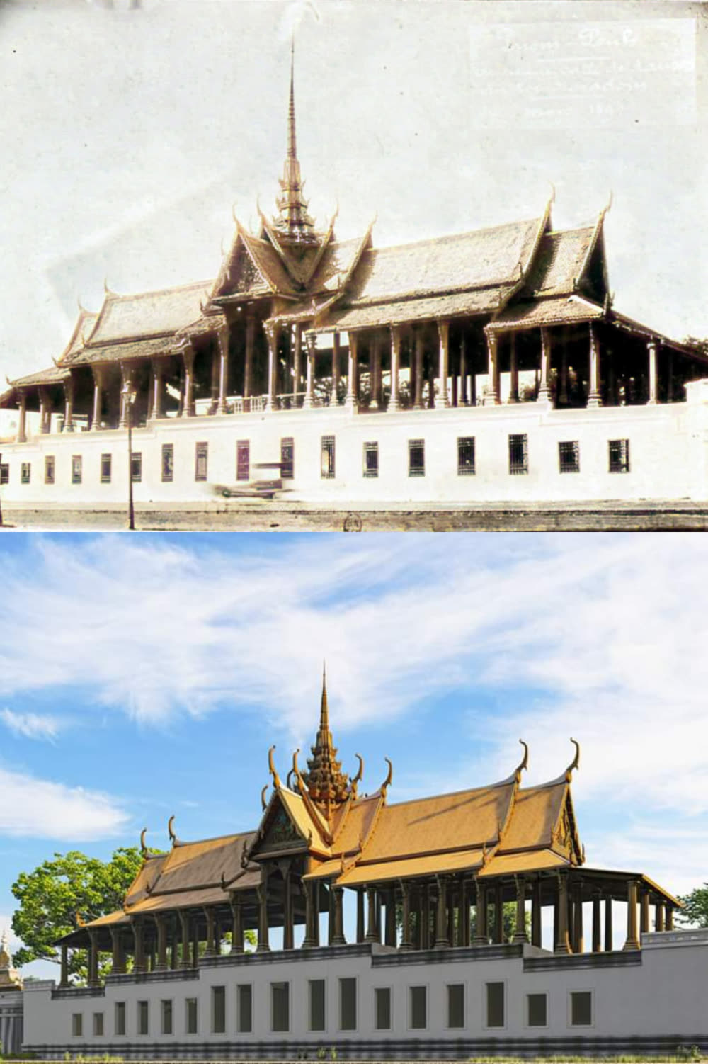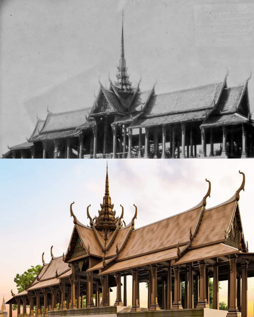 ៦សន្លឹក បង្ហាញពីទិដ្ឋភាពប្រាសាទច័ន្ទឆាយាយុគដំបូងក្នុងរជ្ជកាលព្រះបាទនរោត្តម គូរឡើងវិញដោយនិស្សិតខ្មែរម្នាក់