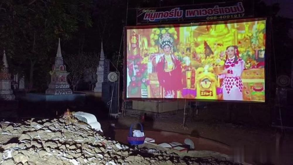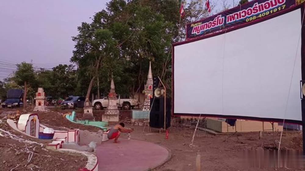 泰国丹暖沙多县83岁老翁威塔瓦以7,000泰铢(约合1333元人民币)的价格,雇佣瓦拉鹏等人前往Bang Pa镇一华人墓园放映露天电影,请威塔瓦已逝世的家人和葬在该墓地的逝者“观影”。当晚,瓦拉鹏放映了3部老电影,包括1部中国电影、1部泰国电影、1部外国电影,瓦拉鹏3人以及墓地“鬼魂”共同观影,影片于凌晨01:30左右放映完。放映前,威塔瓦之子举行了祭祖活动,邀请逝世的阿公阿嬷以及墓园“鬼魂”一起看电影。