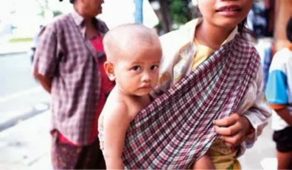 背带。柬埔寨人还会把水布作为背带背小孩,或者直接绑在自行车上,给小孩打造专属座位。