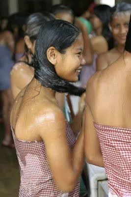 洗澡的时候,本地女性会把水布缠在胸部以上,赤裸双臂和肩膀。