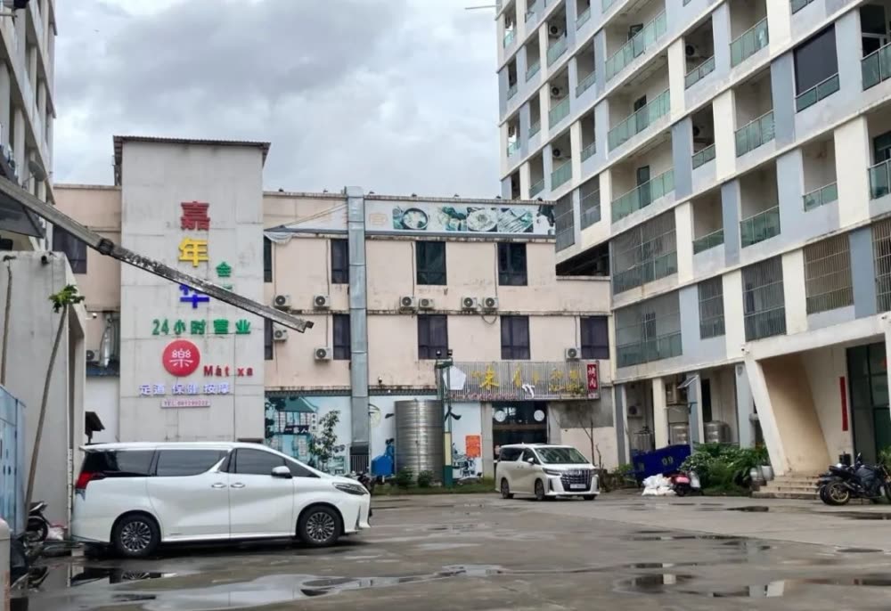 由于整个园区非常大,其中有些偏僻的大楼似乎已经废弃了一段时间,从外面可以看到有的房间里堆着折叠床和床垫。有些大楼底层的商铺还比较活跃,仍有本地人进出。