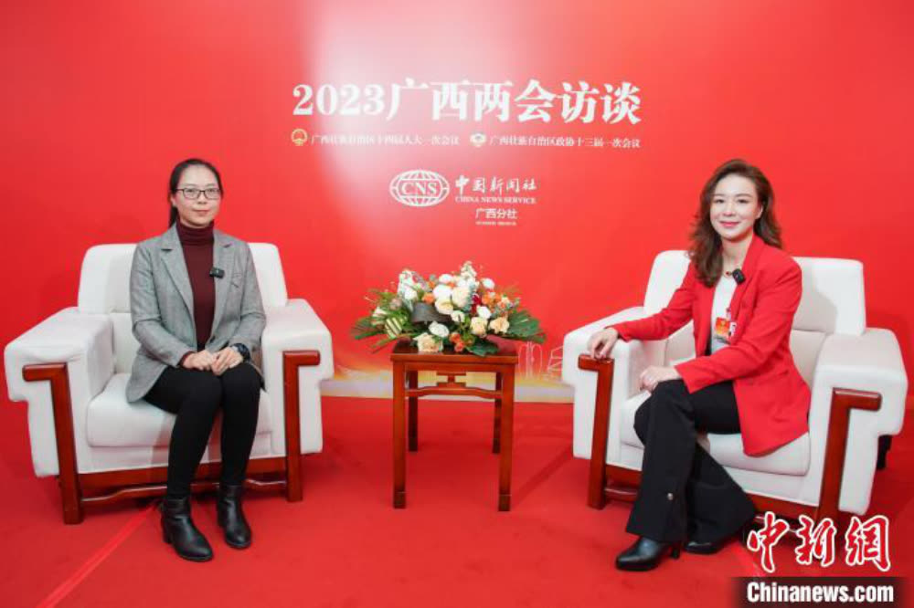 广西政协委员、广西外国语学院董事长韦茜接受记者采访