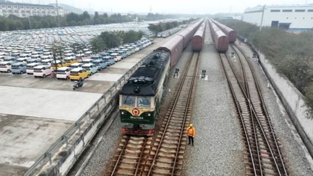在中国广西首个服务汽车工业的铁路综合物流基地——广西柳州雒容商品汽车物流基地,停放着众多新能源汽车,这些车将在这里被转运到火车车厢,通过铁路运输到广州下元站和南沙港站,再经货轮出口到中东、南美洲、非洲等地区。“铁海联运”稳定地保障了柳州市汽车企业的海外市场的货源供给。