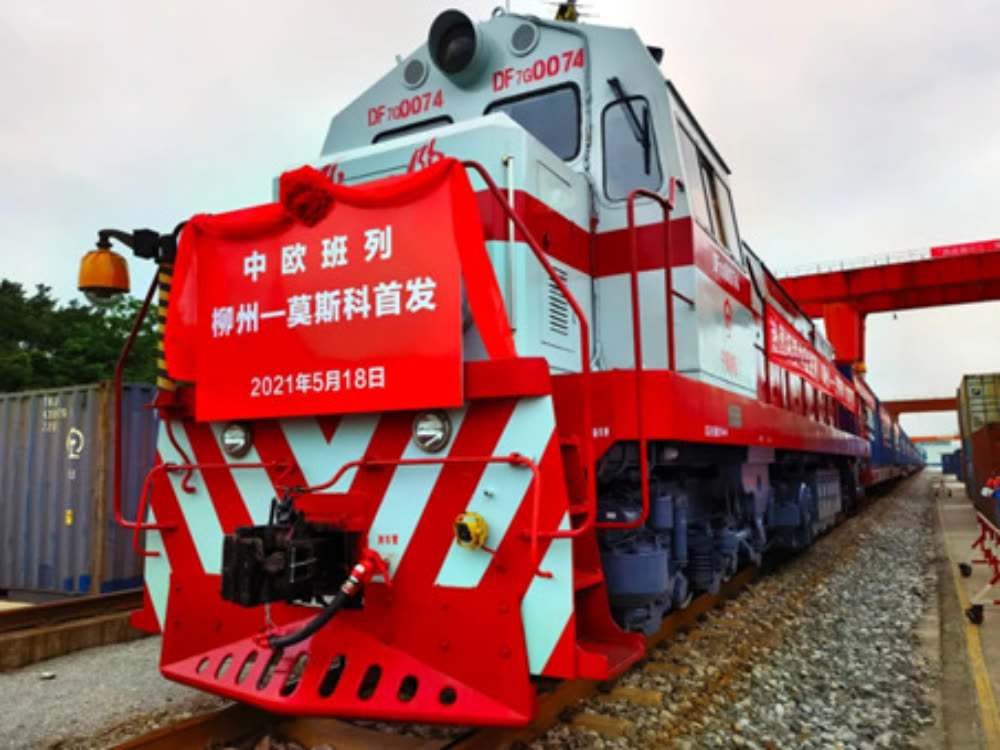 2021年5月18日,广西首次开行跨境直通中欧班列正式开行(柳工供图)