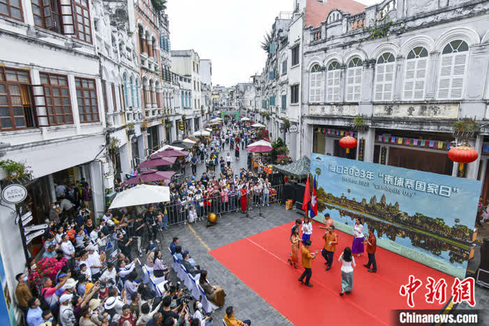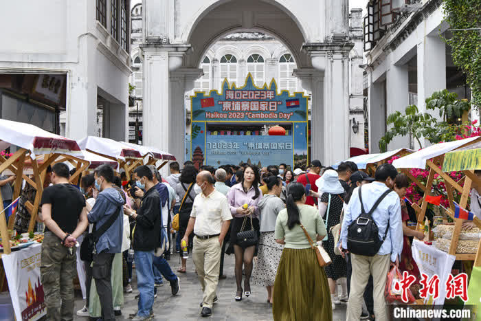海口2023年“柬埔寨国家日”主题推广活动18日在海口骑楼老街开展,民众在音乐、美食与文艺演出中沉浸式感受柬埔寨特色风情。