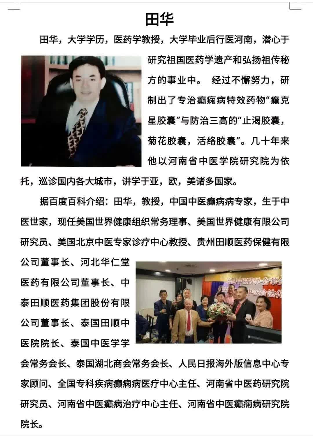 生于中医世家田华教授,是海内外知名中医专家,有着非常丰富的中医诊疗经验,长居于泰国,曾为多个国家首脑诊治过,为泰国皇室服务30年,被称为最牛的中医,还是泰国国家医药最高成就奖获得者。
