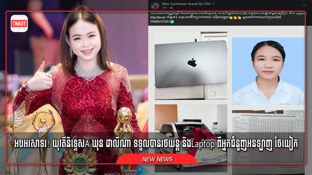 រំភើបជំនួស! អ្នកជំនួញអនឡាញ ចែយៀក ប្រកាសផ្ដល់រថយន្ត ១គ្រឿង រួមទាំង Laptop ដល់យុវតីនិទ្ទេសA លំដាប់ពិន្ទុខ្ពស់ជាងគេទូទាំងប្រទេស