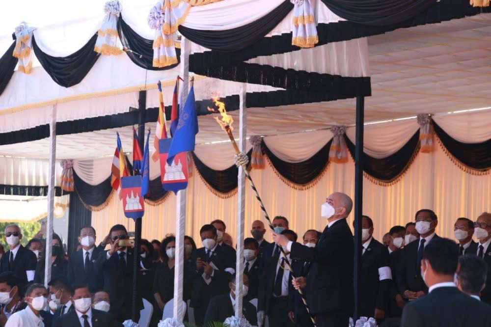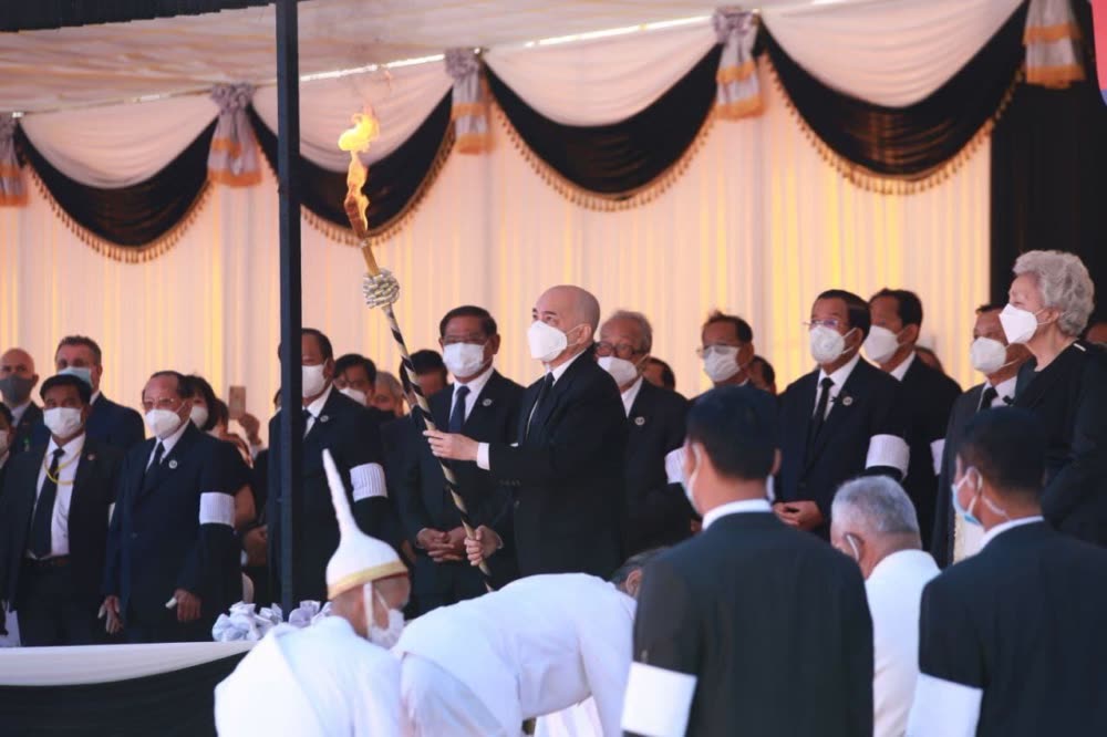 ពីធីថ្វាយព្រះភ្លើងត្រូវបានរៀបចំធ្វើឡើងដោយអង្គព្រះមហាក្សត្រខ្មែរ ព្រះករុណា ព្រះបាទ សម្តេចព្រះបរមនាថ នរោត្តម សីហមុនី បានយាងប្រោសព្រះរាជទានព្រះភ្លើង ក្នុងការបូជាព្រះសព។