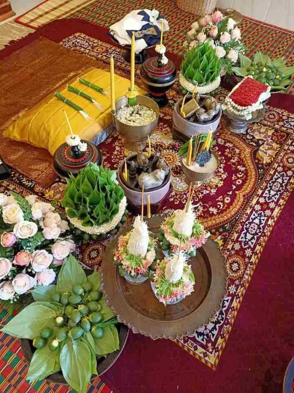 កម្មវិធីនោះគឺ ឱ្យចងផ្កាស្លាបី លើកសំពះគុណមេបា មានបាយសម្ល និងបង្អែមពីរស្ពក ផ្លែឈើមួយគូ ម្លូស្លា សែនជម្រាបមេបាទាំងសង្ខាងឲ្យលោកទទួលស្គាល់ នោះកូនប្រុស កូនស្រីបានឈ្មោះថាសម្រេចជាប្តីប្រពន្ធតាមទម្រង់ការព្រះជ័យចេស្ដាស្រេចបាច់តាមប្រពៃណីខ្មែរ។