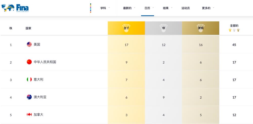 至此,游泳世锦赛第12比赛日的所有比赛全部结束,奖牌榜也发生了明显的变化。