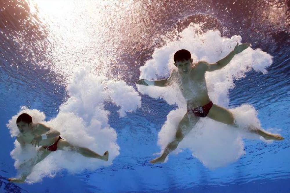 跳水比赛开始后,中国队风卷残云,势如破竹。男子双人3米板决赛,中国组合 曹缘/王宗源以459.18分,这也是中国跳水队本届比赛的首金。