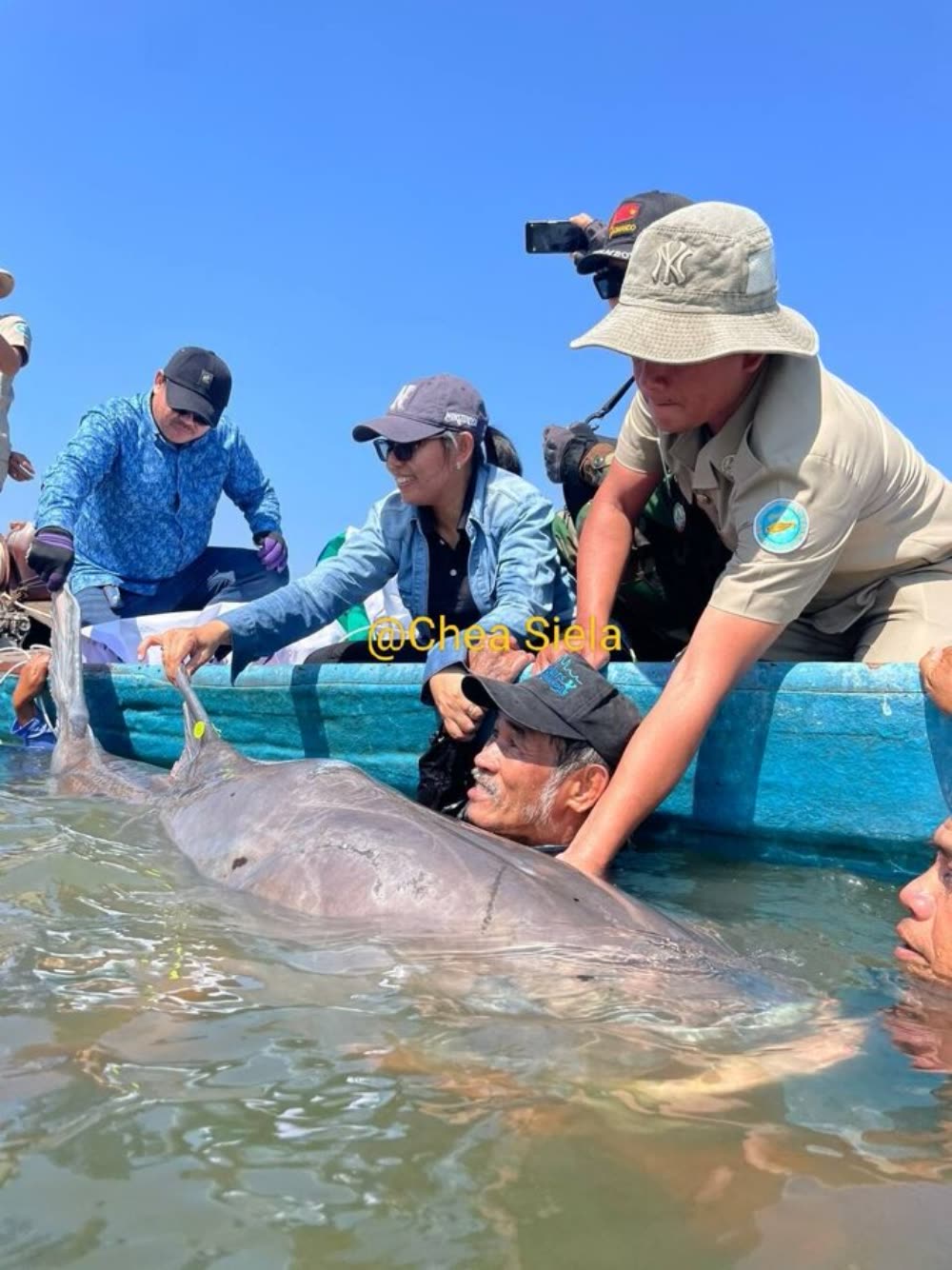 លោក សយ ស៊ាងហុង នាយផ្នែករដ្ឋបាលជលផលត្បូងឃ្មុំ ជំនួសមុខឱ្យក្រុមការងារជលផល ជាបឋមខណ្ឌរដ្ឋបាលជលផលត្បូងឃ្មុំ សូមថ្លែងអំណរគុណយ៉ាងជ្រាលជ្រៅ ជូនចំពោះលោក ស៊េន យ៉ាក់កូប ដែលបានប្រគល់ត្រីដ៏ធំមួយក្បាលនេះ ជូនរដ្ឋបាលជលផល និងបានចូលរួមលែង អភិរក្សត្រីរាជកម្រនេះចូលទៅក្នុងទន្លេវិញ ។ ប្រសិនមានអ្នកចាប់បាន សូមរាយការណ៍មកកាន់រដ្ឋបាលជលផលតាមរយៈលេខ 012805347, 077555804, 097 909 0001 ៕