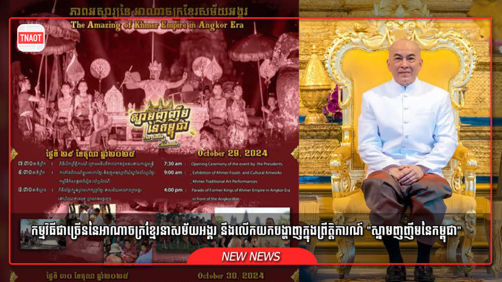 ខេត្តសៀមរាប នឹងរៀបចំព្រឹត្តិការណ៍ "ស្នាមញញឹមនៃកម្ពុជា" រយៈពេលពីរថ្ងៃ ដែលនឹងប្រព្រឹត្តទៅនាថ្ងៃទី២៩-៣០ ខែតុលា ឆ្នាំ២០២៤ខាងមុខនេះ ក្នុងបរិវេណប្រាសាទអង្គរវត្ត ដើម្បីអបអរសាទរខួប លើកទី២០ នៃព្រះរាជពិធីគ្រងព្រះរាជសម្បត្តិ ព្រះករុណា ព្រះបាទសម្តេចព្រះបរមនាថ នរោត្តម សីហមុនី ព្រះមហាក្សត្រនៃព្រះរាជាណាចក្រកម្ពុជា។ ព្រឹត្តិការណ៍រយៈពេលពីរថ្ងៃនេះក៏មានការអញ្ជើញចូលរួមពិធីបើកដោយលោកជំទាវបណ្ឌិត ពេជ ចន្ទមុន្នី ឧត្តមភរិយានាយករដ្ឋមន្ត្រីនៃកម្ពុជា និងស្រ្តីទី១ នៃកម្ពុជា។