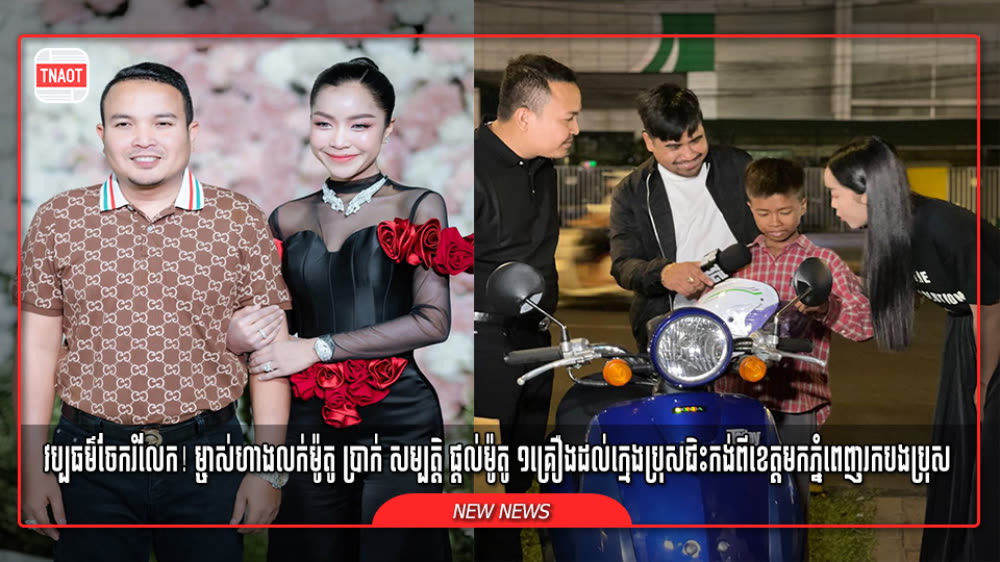 ពិតជាប្រពៃណាស់! ម្ចាស់ហាងលក់ម៉ូតូ ប្រាក់ សម្បត្តិ បានផ្ដល់ម៉ូតូ ១គ្រឿង ដល់ក្មេងប្រុសម្នាក់ខំជិះកង់ពីខេត្តកំពង់ចាមមកភ្នំពេញតាមរកបងប្រុស