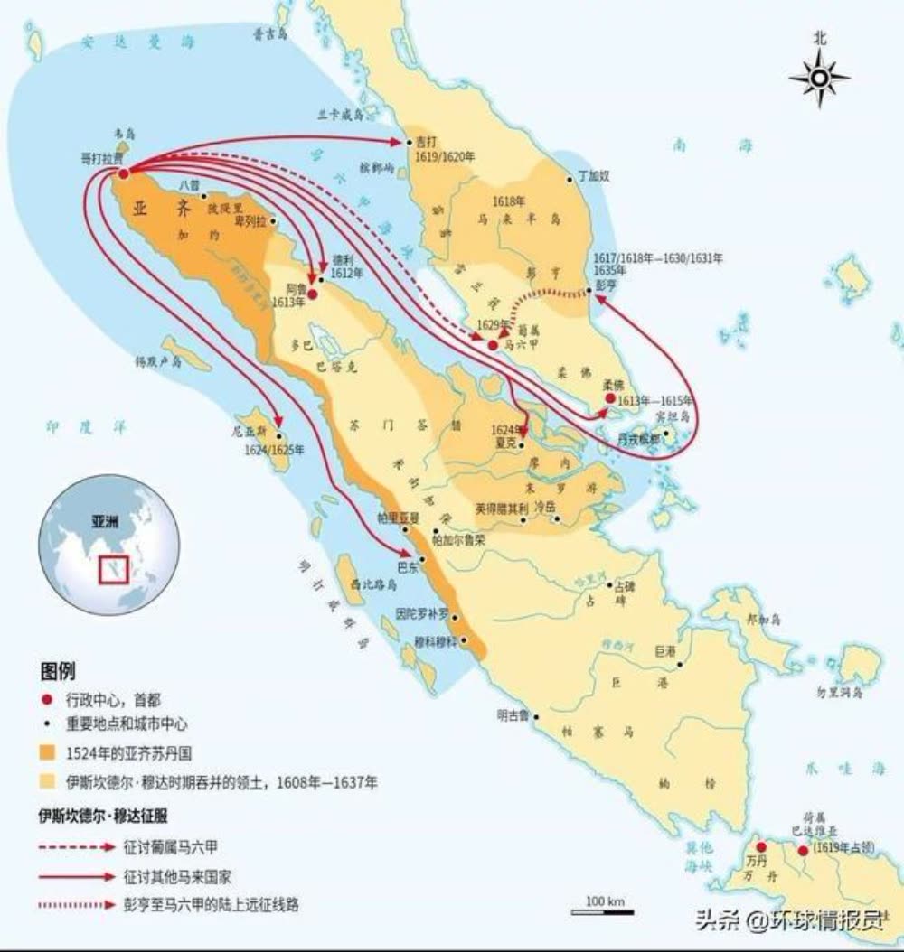 然而,亚齐在东南亚的强势地位,面临着葡萄牙的挑战。新航路开辟后,对香料执着的葡萄牙人利用坚船利炮的优势,在马来半岛建立殖民据点。1511年,葡萄牙殖民者占领马六甲。