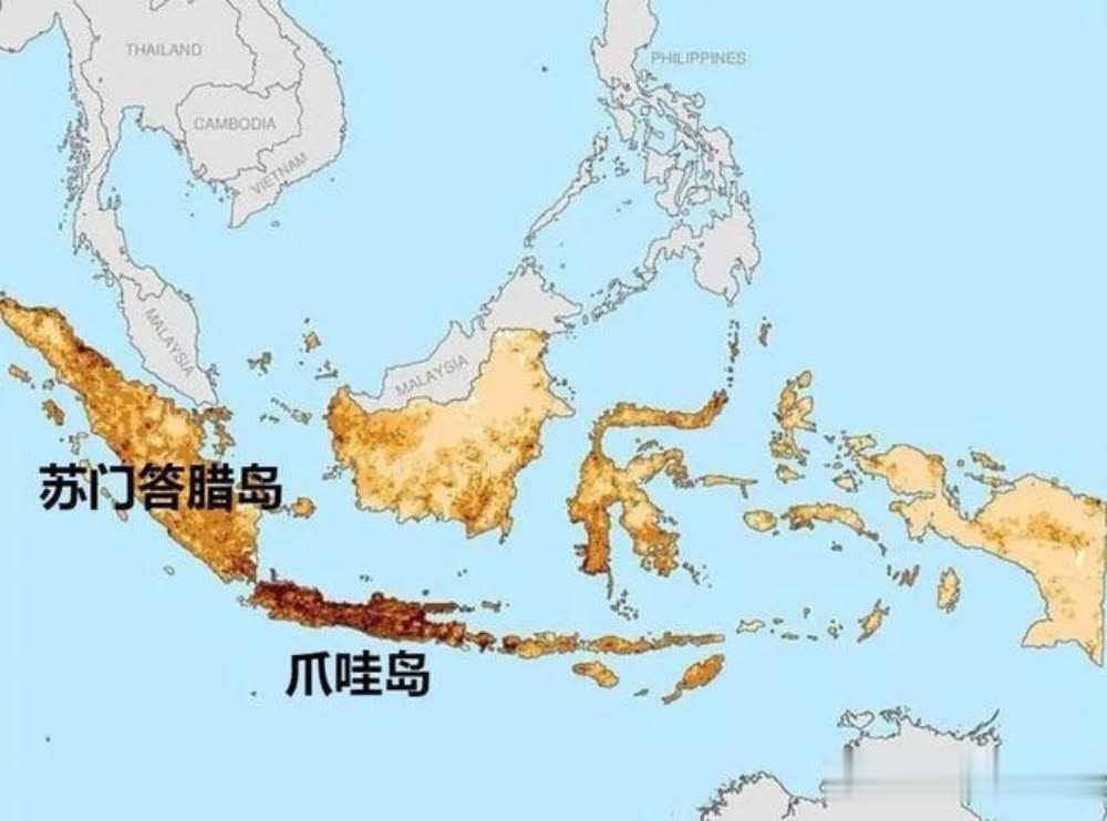 ▲印尼的人口密度图,人口主要集中在爪哇岛