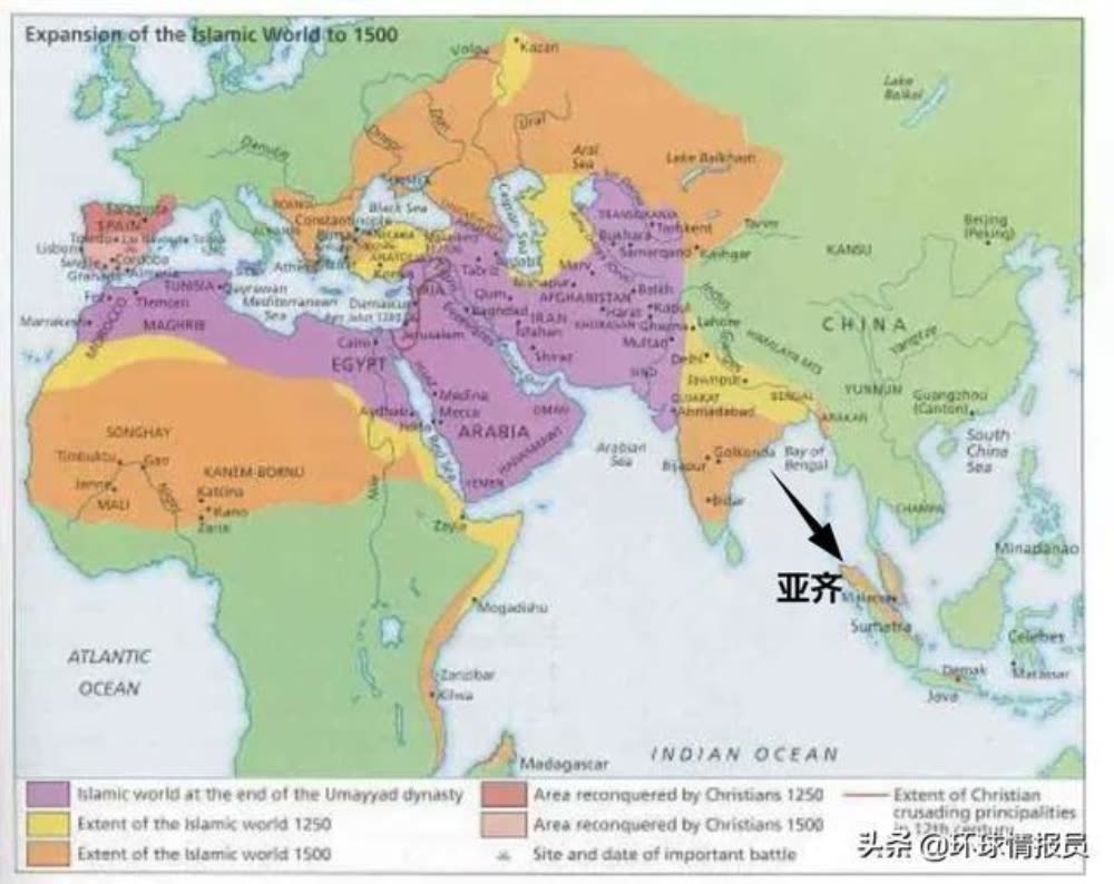 ▲伊斯兰教的传播,苏门答腊岛和 马来半岛 是进入东南亚的第一站
